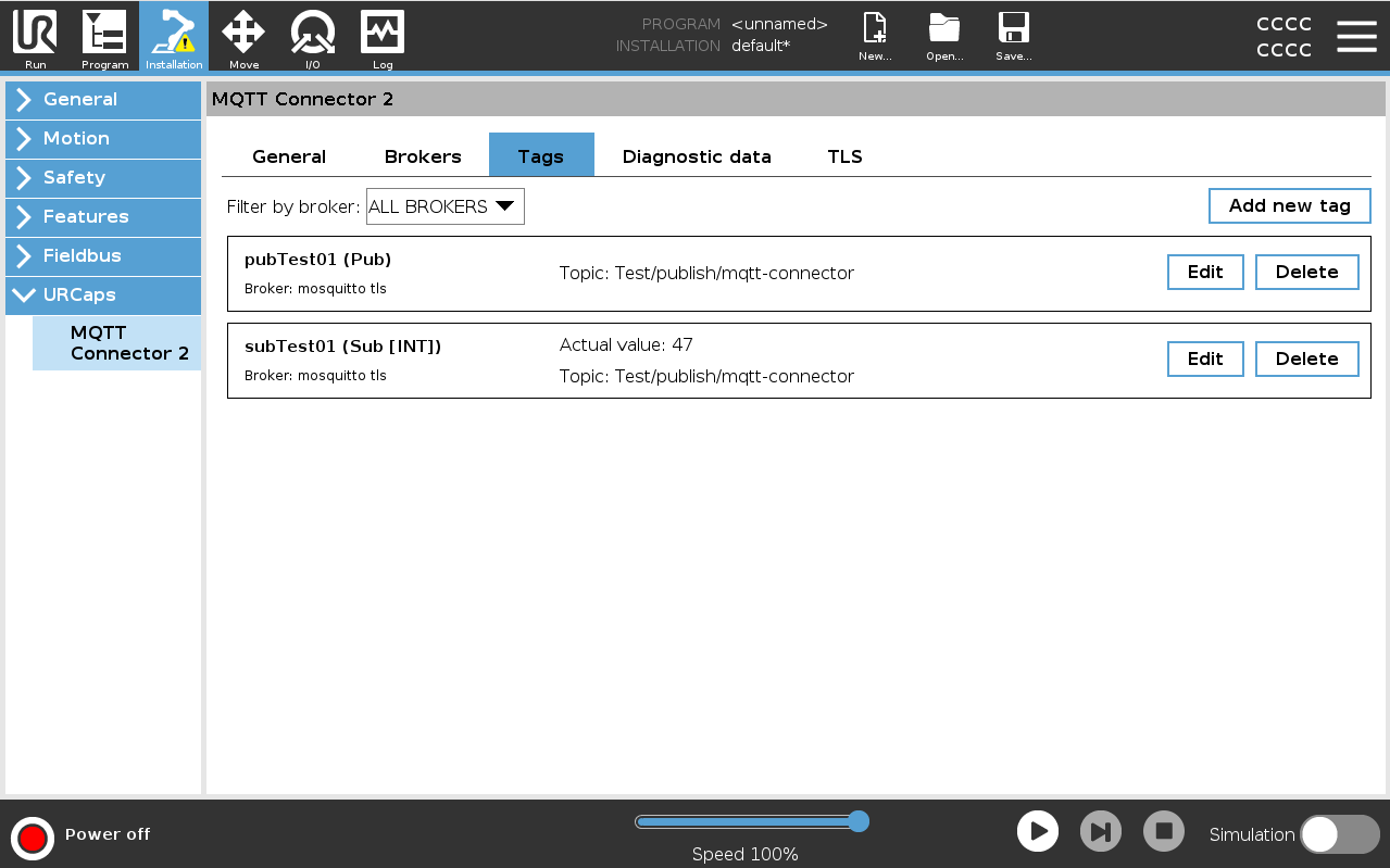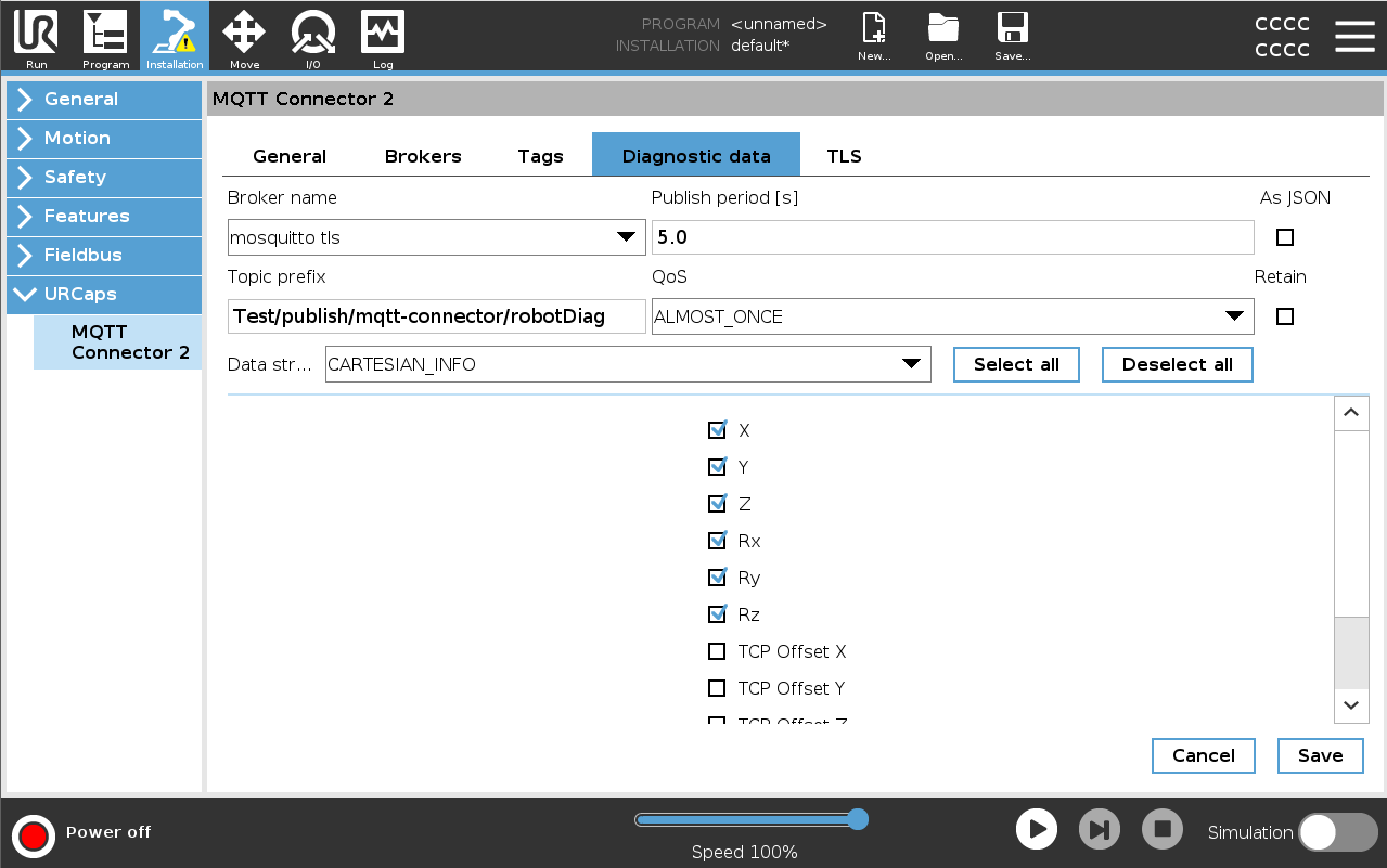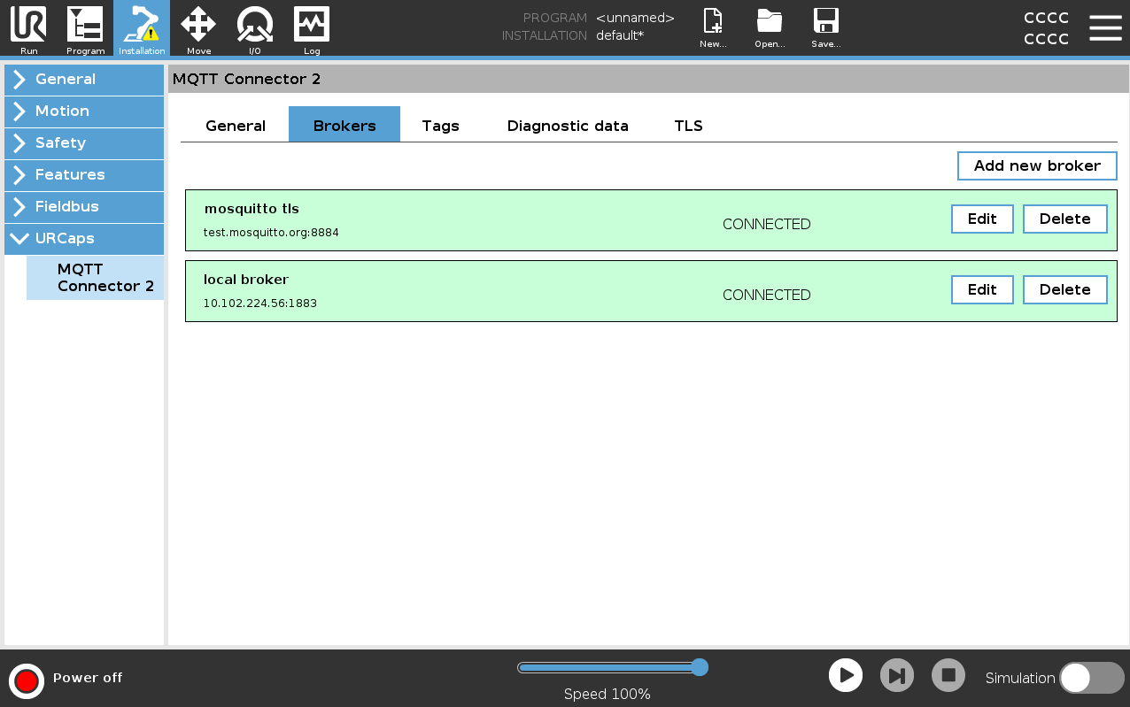 A NEW URCap plugin for Universal Robots to increase communication capability over the network with the MQTT v3.1 protocol. It now supports multiple brokers, an easy-to-use GUI, TLS client certificate connection, and publishing of robot diagnosis data.